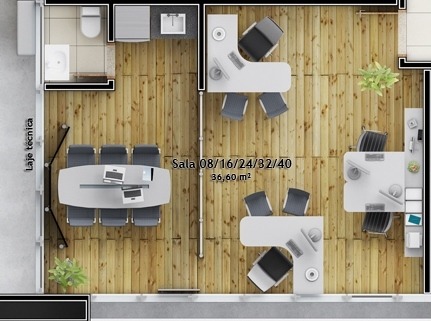 Sala completa e pronta para uso imediato, ultimo andar e sol da manhã